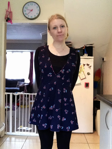 Essentially I need to be less lazy, the perfect length for me is really halfway between the tunic and dress length. I need to trace the whole thing again one size smaller, so I'll take the time to get the skirt length perfect. I'll also line the bodice in a matching fabric instead of pink polka dots, because as careful as I was it does show through. Onwards and upwards, hopefully I'll have a really great version of this to show soon.